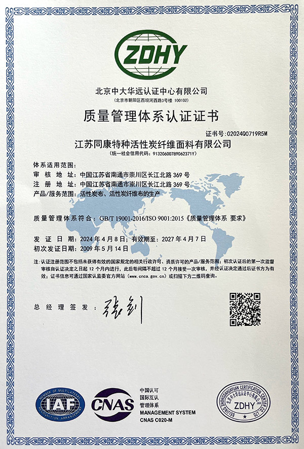江蘇同康特種活性炭纖維面料有限公司座落在江海明珠的窗口,民族工業(yè)的發(fā)祥地,省級經(jīng)濟(jì)開發(fā)區(qū)——南通港閘經(jīng)濟(jì)開發(fā)區(qū),沈海高速、寧通高速貫穿而過交通十分便捷,公司占地面積4.5萬平方米,建筑面積2.8萬平方米,固定資產(chǎn)8000多萬元。同康公司是專業(yè)生產(chǎn)活性炭纖維的企業(yè),公司擁有國內(nèi)特闊幅大型連續(xù)式活性炭纖維生產(chǎn)線,可生產(chǎn)1.5米幅寬的活性炭纖維系列產(chǎn)品。有寬幅拉幅定型機(jī)、多功能層壓織物復(fù)合機(jī)、連續(xù)式活性炭纖維靜電植絨生產(chǎn)線及多功能復(fù)合材料生產(chǎn)線等設(shè)備...